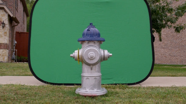 A fire hydrant on grass shot in front of green screen in a neighborhood.