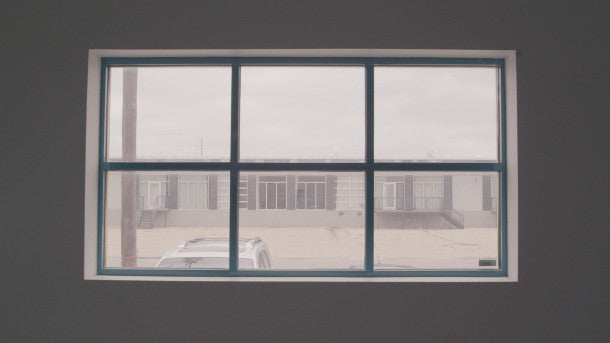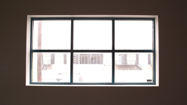 A large six pane window with the exposure set closer to the inside walls, letting the window start to blow out.