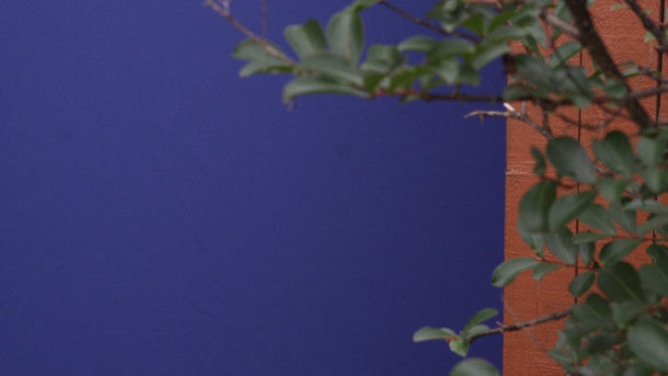 Tight shot of the edge of a fence with a Crape Myrtle shrub overlapping it.